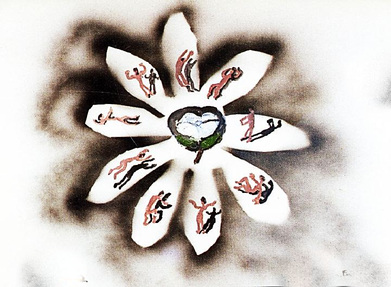 El mandala está compuesto de las nueve flores de la personalidad. A su vez, cada una está rodeada de otras: las flores que conectan con los afectos.